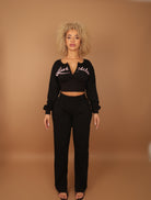 NOIRA bottoms are designed for effortless comfort with a refined finish. Cut in a sleek black tone, they feature a relaxed fit through the leg with a high-waisted waistband that sits smoothly on the body. Soft and easy to wear, these bottoms are made for everyday lounging while maintaining a clean, put-together look.